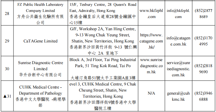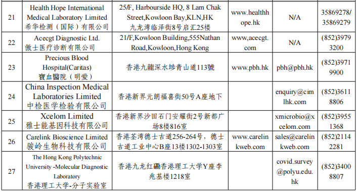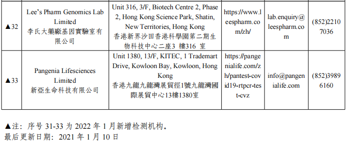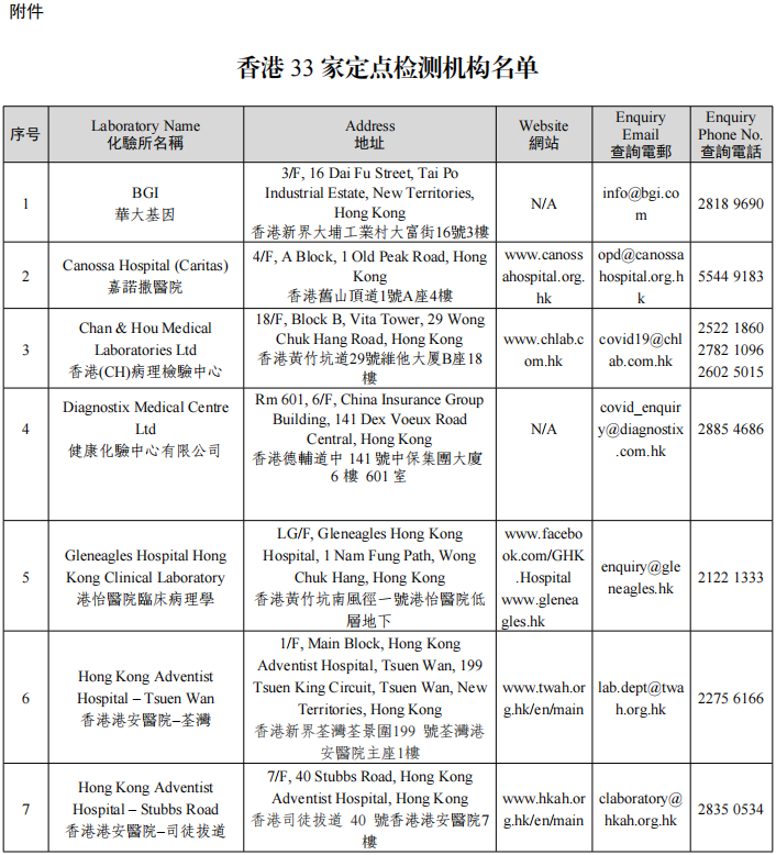 附件:粵港認可的33家香港定點核酸檢測機構名單